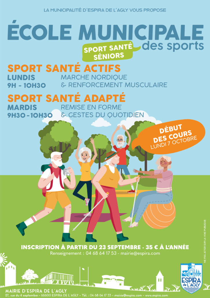 8En partenariat avec le C.C.A.S. d’Espira de l’Agly, l’École Municipale des Sports propose un programme d’activités physiques adaptées pour les séniors. Ce programme est conçu pour favoriser le bien-être et la santé des personnes âgées, tout en encourageant la convivialité et le maintien d’une activité physique régulière.