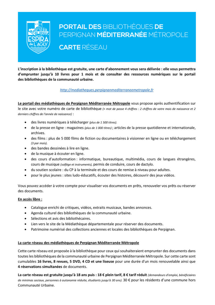 - Tarif résidents hors Communauté Urbaine : 30€/an