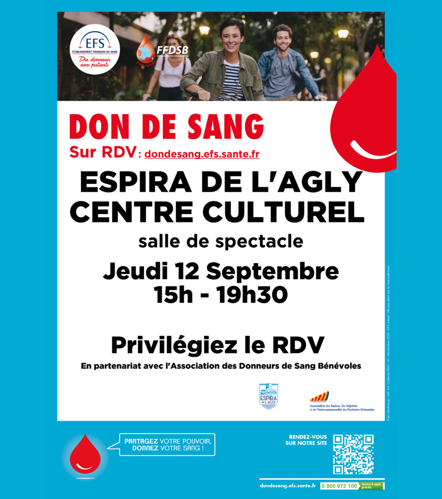 Boostez votre rentrée avec un geste solidaire !Le jeudi 12 septembre Don du sang Espira de l’Agly de 15h à 19h30, Centre culturel : Ensemble aidons à soigner 120 patients !Vous […]