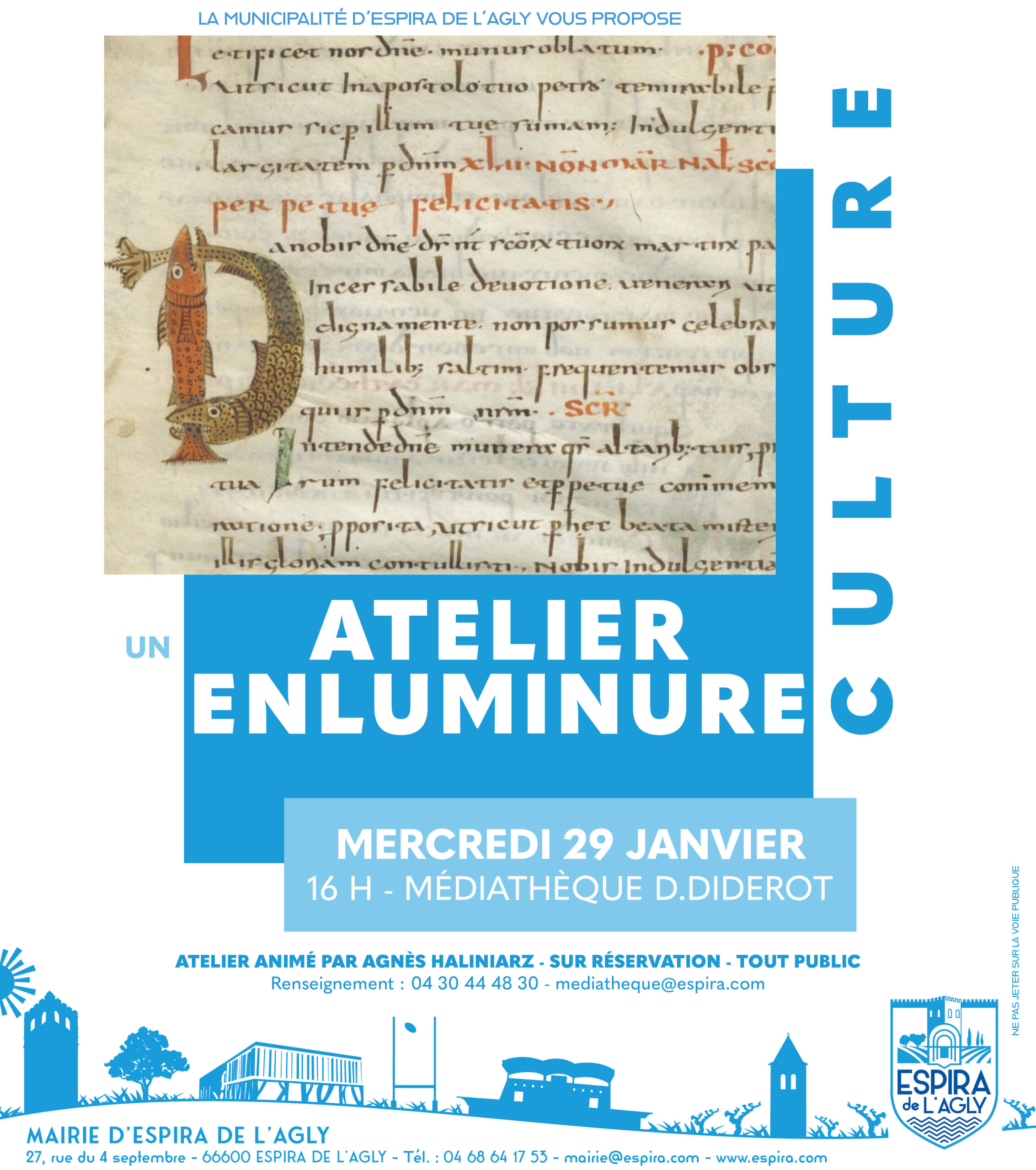 Agnès HALINIARZ vous propose un tout nouvel atelier au sein de la médiathèque : l’enluminure. Pendant deux heures vous aurez l’occasion de mettre en application cet art sur parchemin et de découvrir l’histoire de cette pratique.