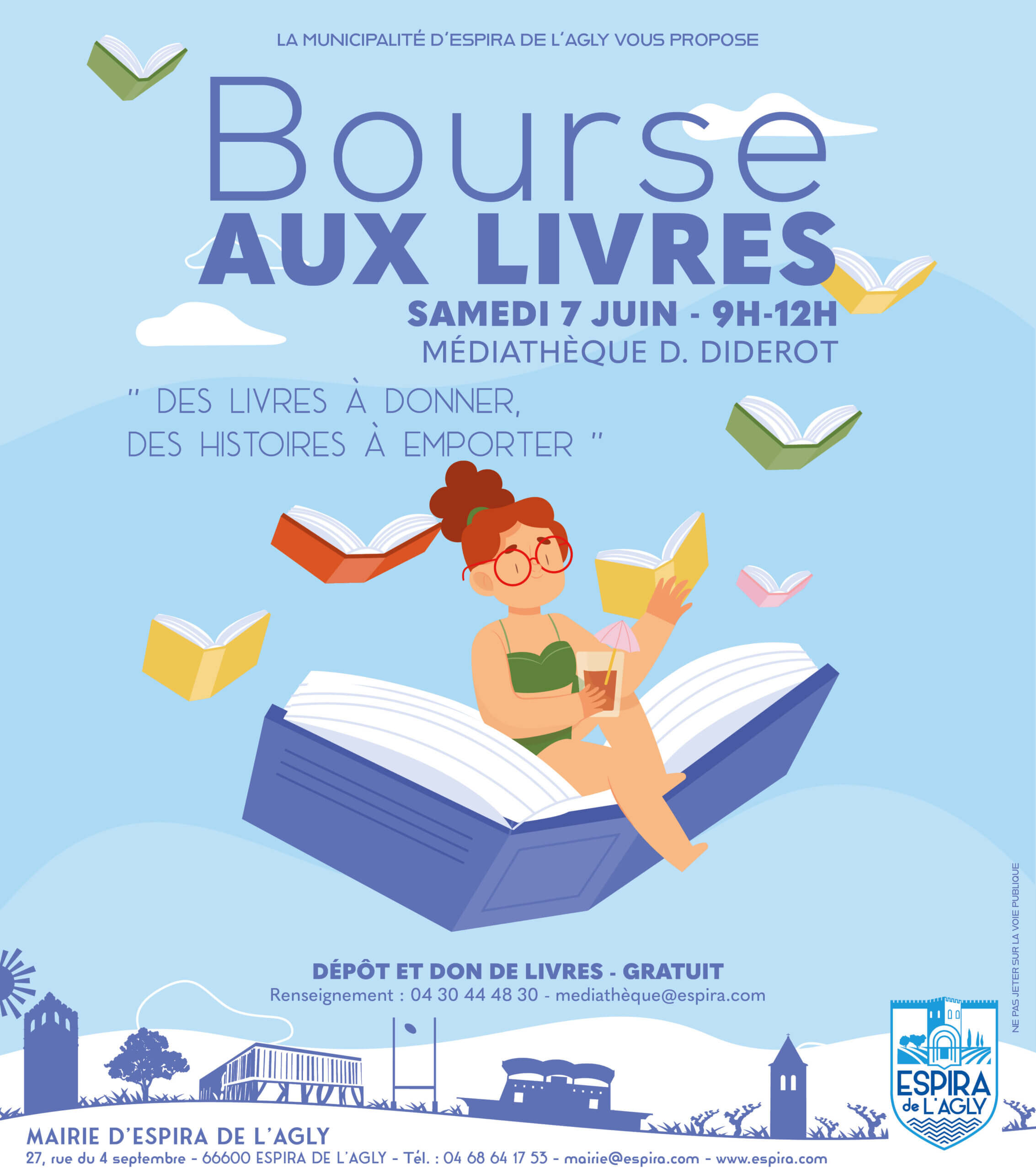 La Médiathèque d’Espira de l’Agly vous invite à sa bourse aux livres le samedi 7 juin de 9h à 12h.
